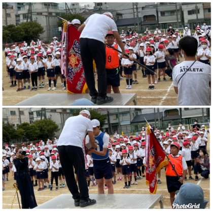 赤組代表の児童に優勝旗、白組代表の児童に準優勝カップが渡されました。
