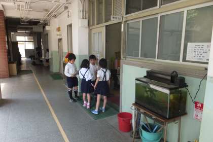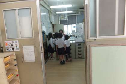 事務室や保健室も行きました。職員室では、教頭先生にシールをもらいました。
