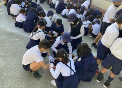 28日(木)の1時間目、2年生と5年生のペア学年で、秋の花いっぱい活動を行いました。