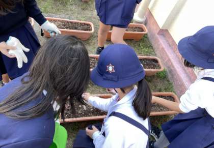 秋の花いっぱい活動で、チューリップとスイセンの球根をプランターで育てていきます。