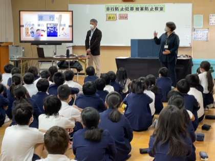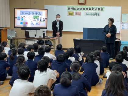 今日行った非行防止教室の内容を、5・6年生の保護者の方々にも、理解していただき、お子さまが非行や犯罪に巻き込まれないように説明している手紙も本日配布しておりますので、是非お読みください。