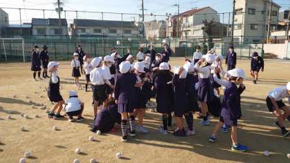 先日行った運動会では団体競技を実施しなかったので、1年生にとっては初めて玉入れに挑戦します。
