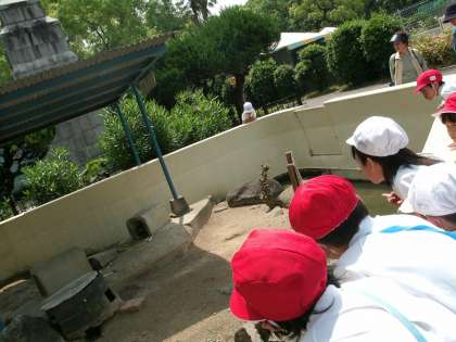 学校を出発し、針中野駅から電車で阿部野橋に向かいました。動物園に着くと重い荷物を木陰に残し、友だちと手をつないで、いろいろな動物を見学しました!!
