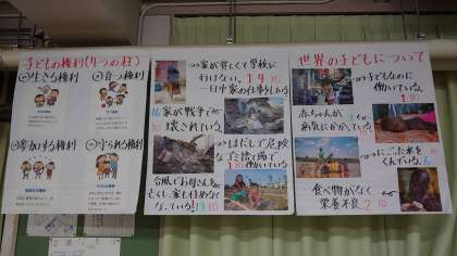 子どもの権利を知り、自分だけでなく自分以外の人の権利も大切にできるよう、考えを深めていました。先生の発問に対して真剣な眼差しで学習する子どもたちの姿がありました。