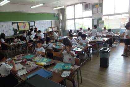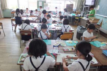 紙粘土とマグネットを使ったアクセサリーを作っていました。紙粘土と絵の具を使い自分の好きなものを作り、その後ろにマグネットを埋め込んで出来上がりです。動物やお姫様、ハンバーガーにポテトもありました。