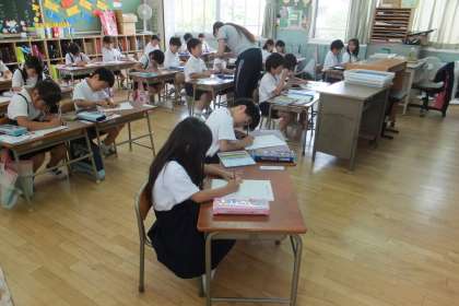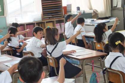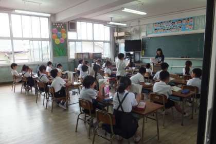 2組は国語の時間で、本読みを全員でしたり順番にしたりしていました。