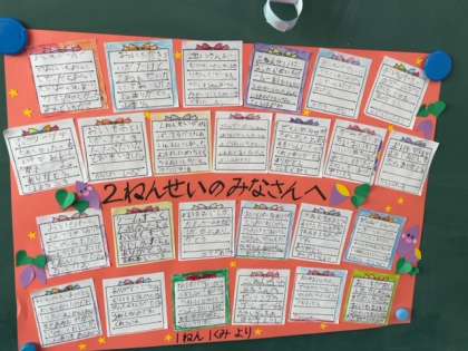 先日、2年生が1年生を招待したお芋パーティーに対しての、お礼の手紙が2年生の各学級に送られました。