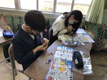 パワーポイントなどを使って工場における生産工程や、優れた最新技術の発展を理解しながらプラモデルの生産に関わる人々の努力や、仕事に対する意識を確認しました。また、実際にプラモデルを組み立てることで、組み立てやすさや安全のために製品に込められた工夫を感じました。