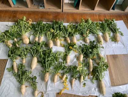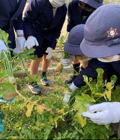 水やりなどの当番を決めたり、草抜きをして育てた田辺大根を収穫した時は、とても嬉しそうに収穫をしていました。