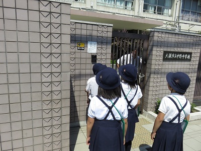 中野中学校では、正門で校長先生が待っていてくださいました。