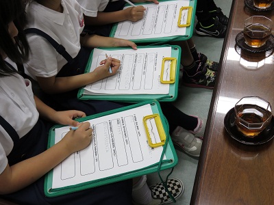 校長室に入れていただき、インタビューしました。子どもたちは、緊張することなく、明るくお話しすることができました。