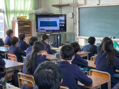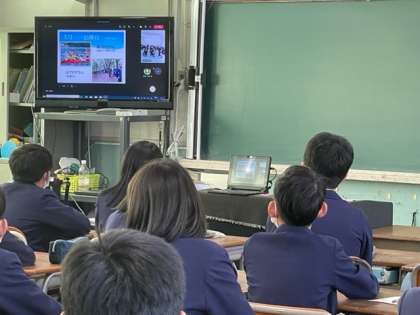 2/28(月)、昨年度と同様、オンラインで南百済6年生と中野中学校との交流会を行いました。中学校での学校行事や生活の様子がよく分かるように、中野中学校生徒会が中心に、紹介してくれました。