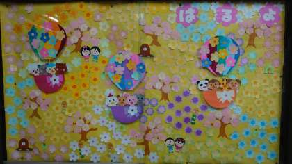 日に日に春らしい温かさを感じ取れるようになってきました。季節に合わせて、玄関掲示も春を待ち望む鮮やかなものに変わりました。