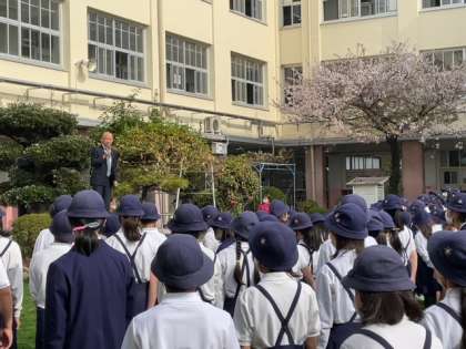 11日(月)に、約3ヶ月ぶりに中運動場で児童朝会が行われました。それまではネットを繋げてのオンライン児童朝会でしたが、校長先生とみんなの顔が見れての児童朝会は、伝わり方が違いますね。