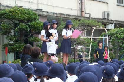 そして、最後は、給食委員会から「給食時の服装」をぬいぐるみを使って説明がありました。