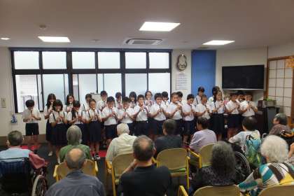 たこ焼きパーティーでの利用者のお年寄りとの交流や合奏と合唱の後のお別れの握手の時、子どもたちはとても良い表情をしていました。