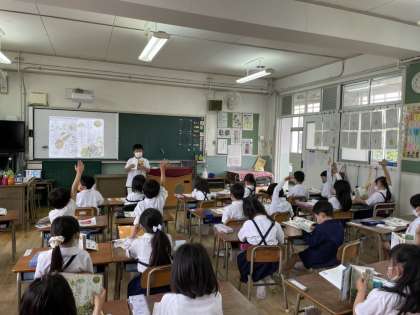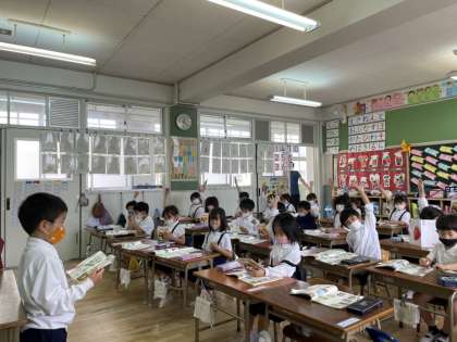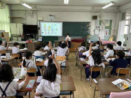 1年生の国語の様子です。みんなにはなそうをテーマに、写真を見てどれを選んだのかクイズを出しあいました。