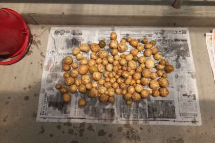 また、なかよし学級の畝からはジャガイモが収穫され、みんなできれいに洗いました。
