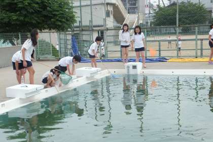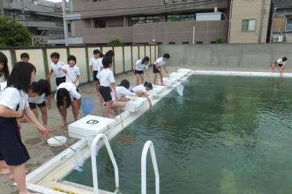 今日は、6月恒例のプールのヤゴ取りをしました。ヤゴはもちろんトンボの幼虫で、去年の秋から春にかけてプールの底でで育ちました。