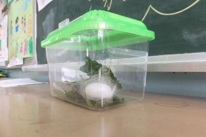 カイコは、1年生で1人2匹飼育していますが、2〜3年の学級ではその残りを分けてもらって飼育していました。