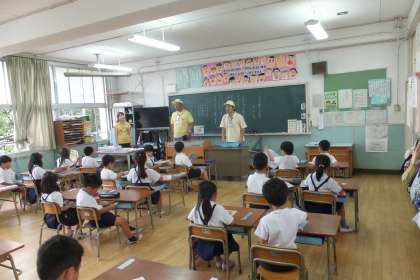 6月17日(水)、昨日、東住吉区役所ラビット隊の皆さんが1年生に登下校の安全指導に来てくださいました。