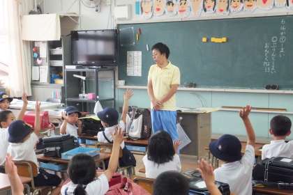 子どもたちは、質問されると元気に手を挙げ、大きな声で発表していました。