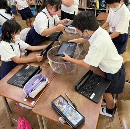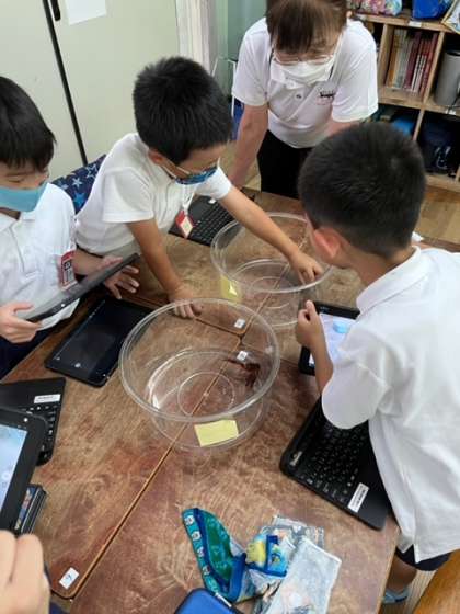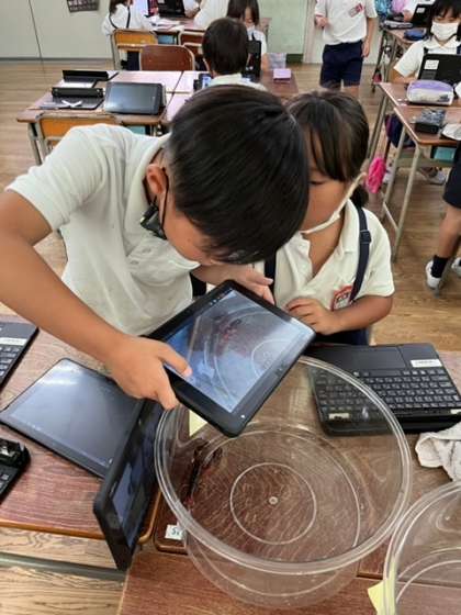 まず最初に、いつでもしっかりとザリガニの体のつくりなど、特徴が観察できるために、タブレットを使ってザリガニを撮影しました。