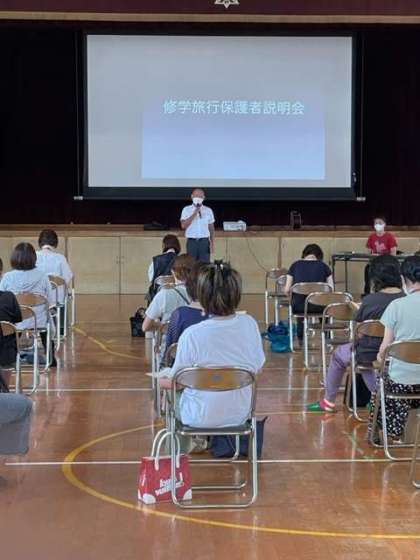 7日(水)の放課後、講堂で修学旅行保護者説明会を行いました。お忙しい中、沢山の保護者の方々が集まってくださり、ありがとうございました。