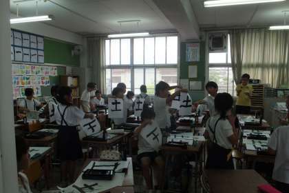 3年生で習字が始まり「一」という字を習ったところで、今日は「土」という字の練習をしていました。