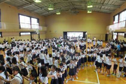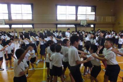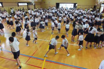 1回戦は縦割り班、2回戦は男女別、3回戦は全体でしました。