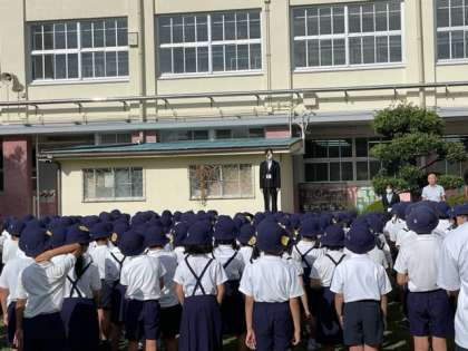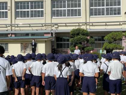 その後は、9月から教育実習生として来ていた2人は、今週の水曜日までということもあり、全校児童に挨拶を行いました。