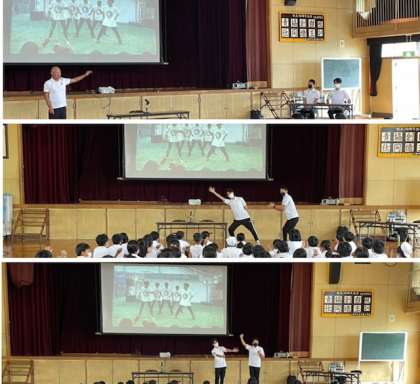 5日(水)3・4時間目に、トップアスリートによる「夢・授業」として、ダブルダッチ日本代表として、またダブルダッチ世界チャンピオンの方々が南百済小に来てくださいました。