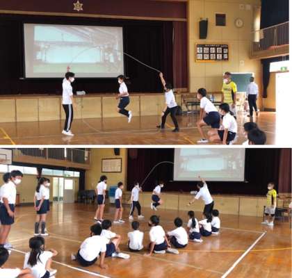 体験談などの講話や、縄に入るタイミングやリズムの取り方など実技指導を通じて跳べた達成感を味わえました。子どもたちに「夢」を持つことの素晴らしさ、諦めずに努力し続けることの大切さ等をスポーツへの興味・関心を高めることができました。