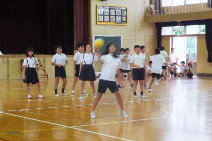7月17日(金)、終業式の日、6年生が学級対抗のドッチボール大会をしていました。