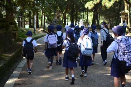 18日(火)、5年生は奈良公園に遠足に行きました。一度延期になってからの今回は秋晴れ。待ちに待った遠足でした。