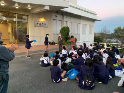 きれいな夕焼けをバックに開舎式です。