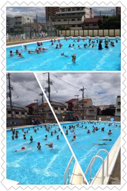 子どもたちは早速、プール開放を楽しんでいました。今日は、前半が高学年、後半が低学年でした。