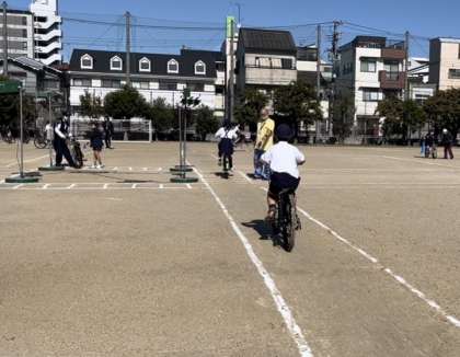 2日(水)の2〜4時間目に、低・中・高学年の順に、秋の交通安全教室を東運動場で行いました。