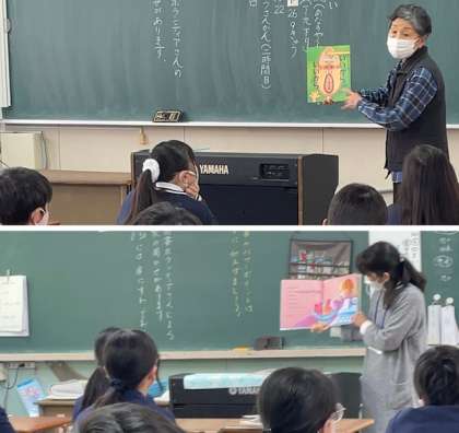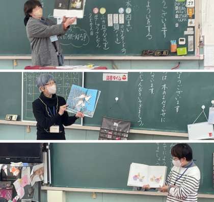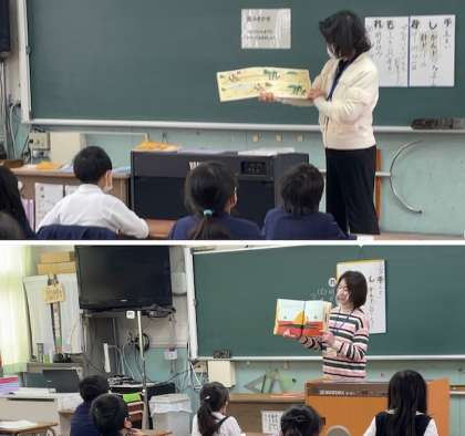 22日(水)の朝、図書ボランティアさんが来校し、1年、2年、4-1、5-1に読み聞かせをしてくださいました。子どもたちに読書の世界に入り込ませる語り口調で、清々しい朝の時間で過ごせています。いつもありがとうございます。