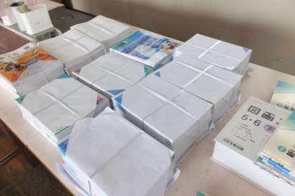 式が終わると、新しい教科書を持って教室にもどっていきました!!