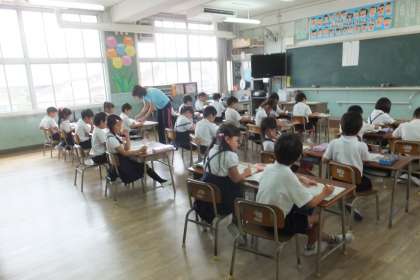 始業式の後は、宿題の答え合わせなどの学習や席替えなどの学級活動が早速始まりました。
