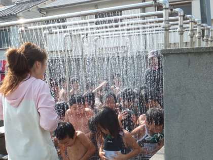 1時限目は1年生が入りました。シャワーも少し冷たそうですが、みんなうれしそうでした。