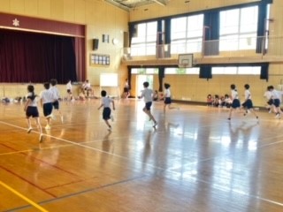 6年生で、体力テストがありました。来月中旬に何種目かありますが、気温が高くなる前に「20mシャトルラン」を行いました。