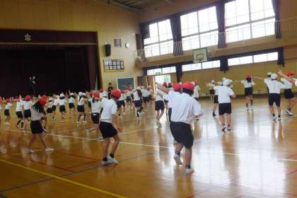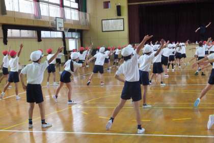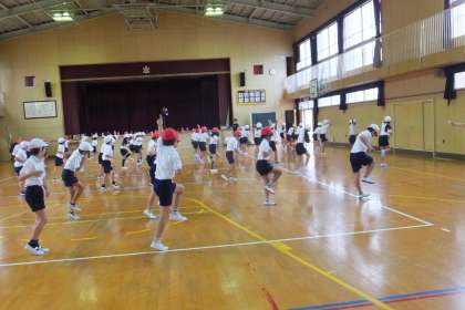 軽快な音楽に乗って、子どもたちがダンスをしています。「ここで、ランニングマン!!」、指導する先生から大きな声がしました。少し難しそうですが、仕上がりが楽しみです!!