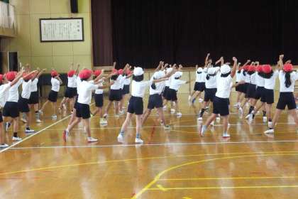 「1・2・3・4・5・6・7・シェー!!」、「1・2・3・4・ご一緒に!!」と、声が聞こえてきました。