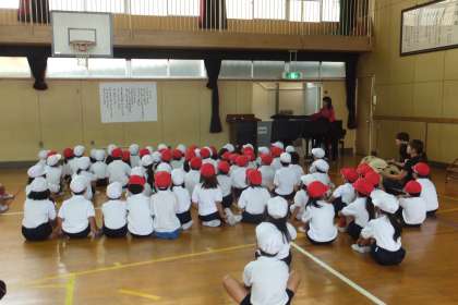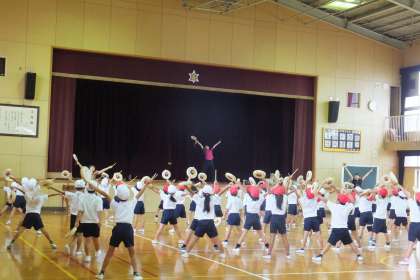 1年生は、日本から一番近い外国、韓国・朝鮮の民族楽器ソゴを使った踊りをします。自分たちが歌って録音した歌に合わせて踊るそうです。