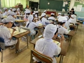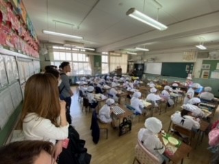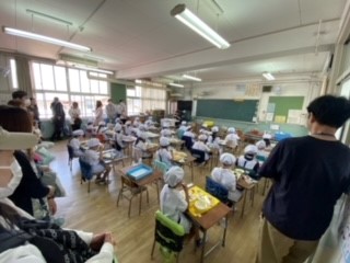 お家の方に見られながら食べるのは緊張するのか、はたまたコロナ禍での黙食がまだ影響しているのか、3クラスとも静まり返って食べていました。一番緊張していたのは、実は担任かもしれません。