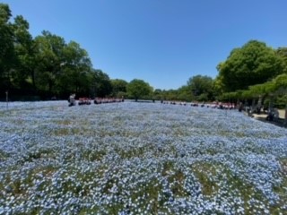 ネモフィラ畑。そろそろ見頃も終わりの時期だと思いますが、とても美しく咲いていました。