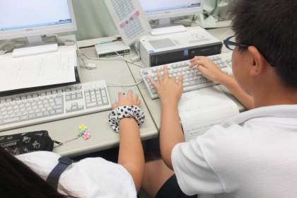 9月11日(金)、5年生の社会の学習の様子です。パソコン教室でインターネットを使って調べ学習をしていました。