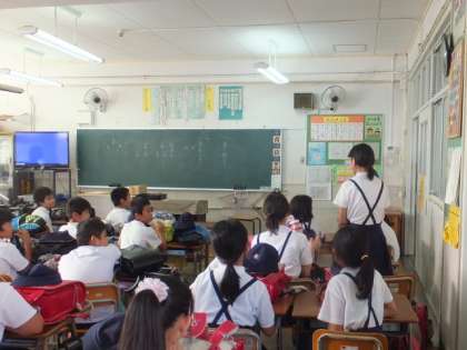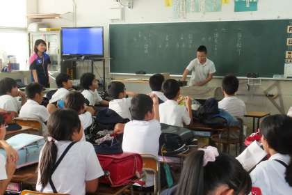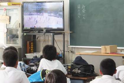 最初に去年の運動会の応援団のビデオを見て志気を高めました。自己紹介をして、いよいよ団長、副団長を決めました!!6年生が積極的に立候補し、自己アピールして多数決で決めました。